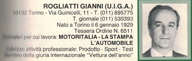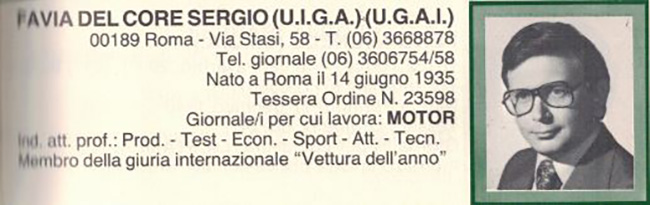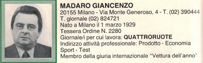 direttore del mensile Motor (fondato dal padre) e membro imprescindibile del nostro gruppo. Di Quattroruote era normalmente presente Giancenzo Madaro:
