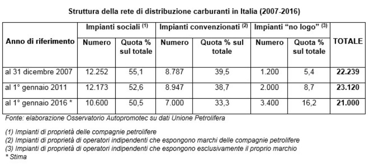Allo stesso tempo è da sottolineare, inoltre, come la rete di distribuzione carburanti stia proseguendo il suo processo di razionalizzazione che ha portato alla chiusura di 1.239 impianti tra il 2007 e il 2016.