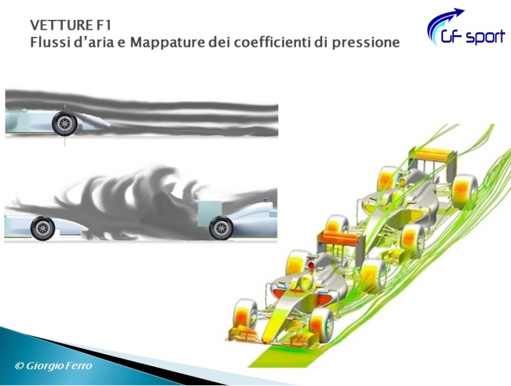 Quindi, in sintesi, man mano che si avvicina, la vettura che insegue vede variare sempre più sostanzialmente la sua guidabilità. E di fatto, non può più percorrere le curve con la stessa efficacia di quando correva in aria libera. E quindi vede pregiudicate anche le possibilità di “lancio” nel rettilineo seguente, alla fine del quale avrebbe potuto giocarsi le chance di sorpasso. Nonostante quindi le regole sportive dopo il 2011 consentano a chi segue di giocarsi anche il jolly del DRS, ovvero di guadagnare ulteriormente in termini di resistenza, le capacità di sorpasso sono ampiamente compromesse dalla penalizzazione aerodinamica.
