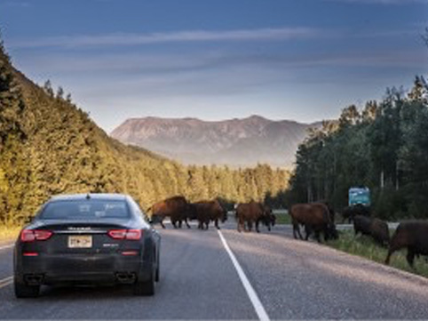 Da Dawson back to San Francisco, l’itinerario subisce poche modifiche, e scendendo in territorio canadese c’è pochissimo traffico, il che consente –confesso- di provare a “sentire” gli oltre 400 cv della Quattroporte, e divertirmi nei passi con molte curve e controcurve. Da Kamloops si entra nella British Columbia, e occorre fare attenzione ai megaTir che trasportano il legname, e ai bisonti che attraversano la strada.