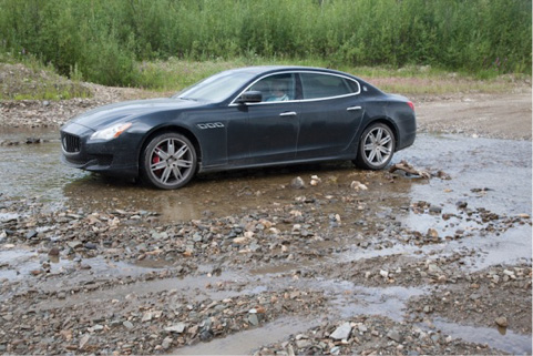 La ricerca delle aree minerarie ha costretto la Quattroporte ad affrontare percorsi insoliti per una berlina sportiva, per esempio